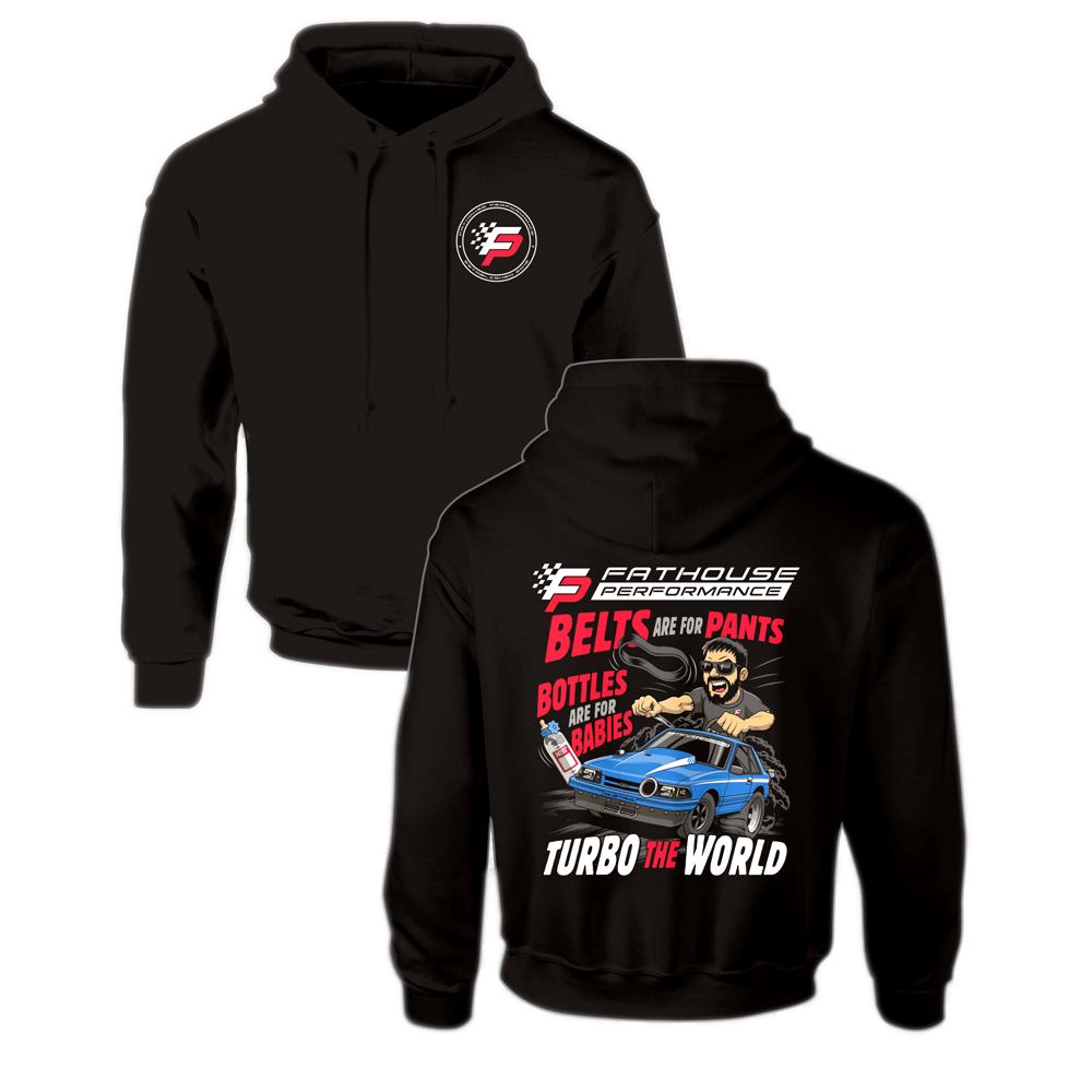 The Fathouse Performance “Turbo The World” Hoodie is for the people who see potential in everything. From street cars to full builds, the mindset is the same: more power, more boost, no limits.